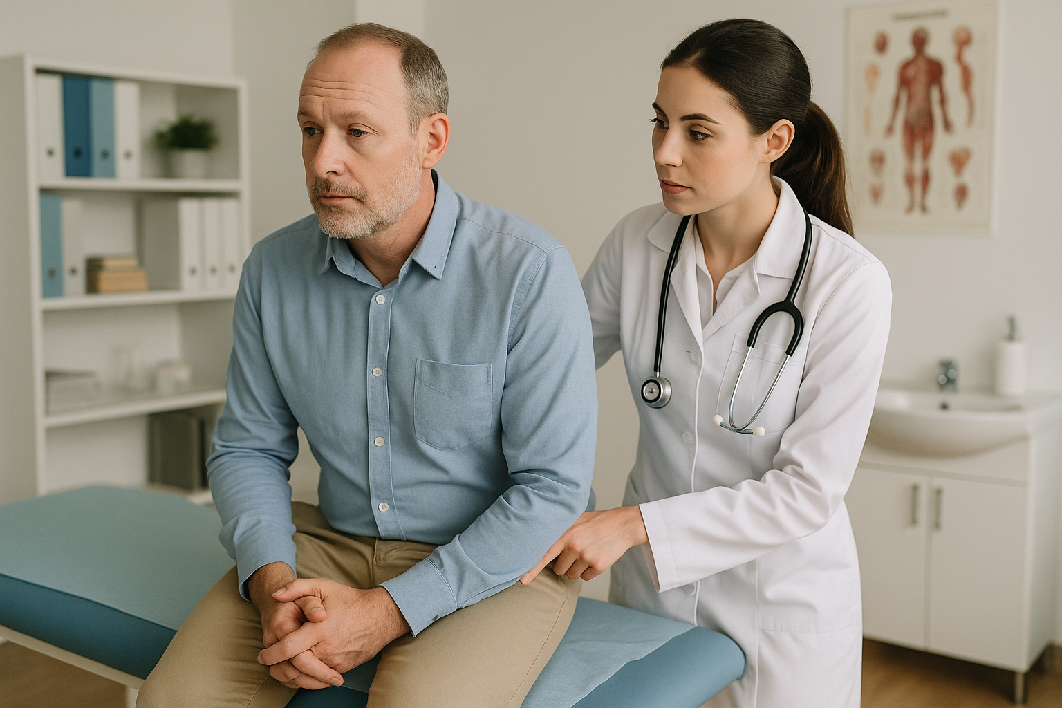 - Toque retal: exame físico, rápido, que permite ao médico avaliar tamanho, textura e possíveis nódulos na próstata. Isso, às vezes, pode revelar alterações mesmo quando o PSA está normal.